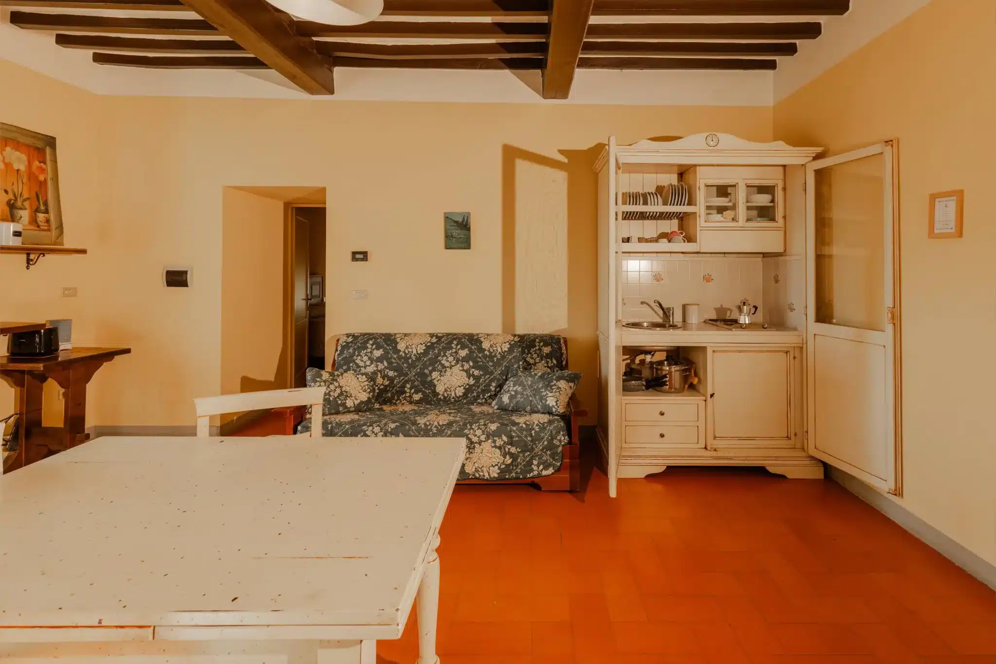 Un appartamento che profuma di legno e di storie antiche, dove ogni dettaglio racconta il tempo e la cura.