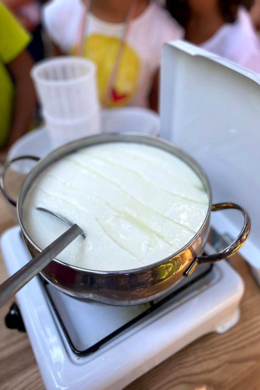 A seguire, parteciperete a un laboratorio di caseificazione della durata di circa un’ora, un momento pratico e coinvolgente per conoscere le fasi di trasformazione del latte e il valore del lavoro artigianale.