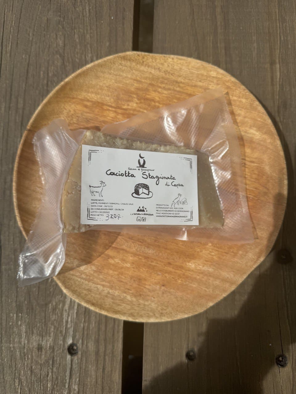 Formaggio di capra stagionata 24 mesi, 100% latte di Capra Camosciata delle Alpi, allevate al pascolo libere.