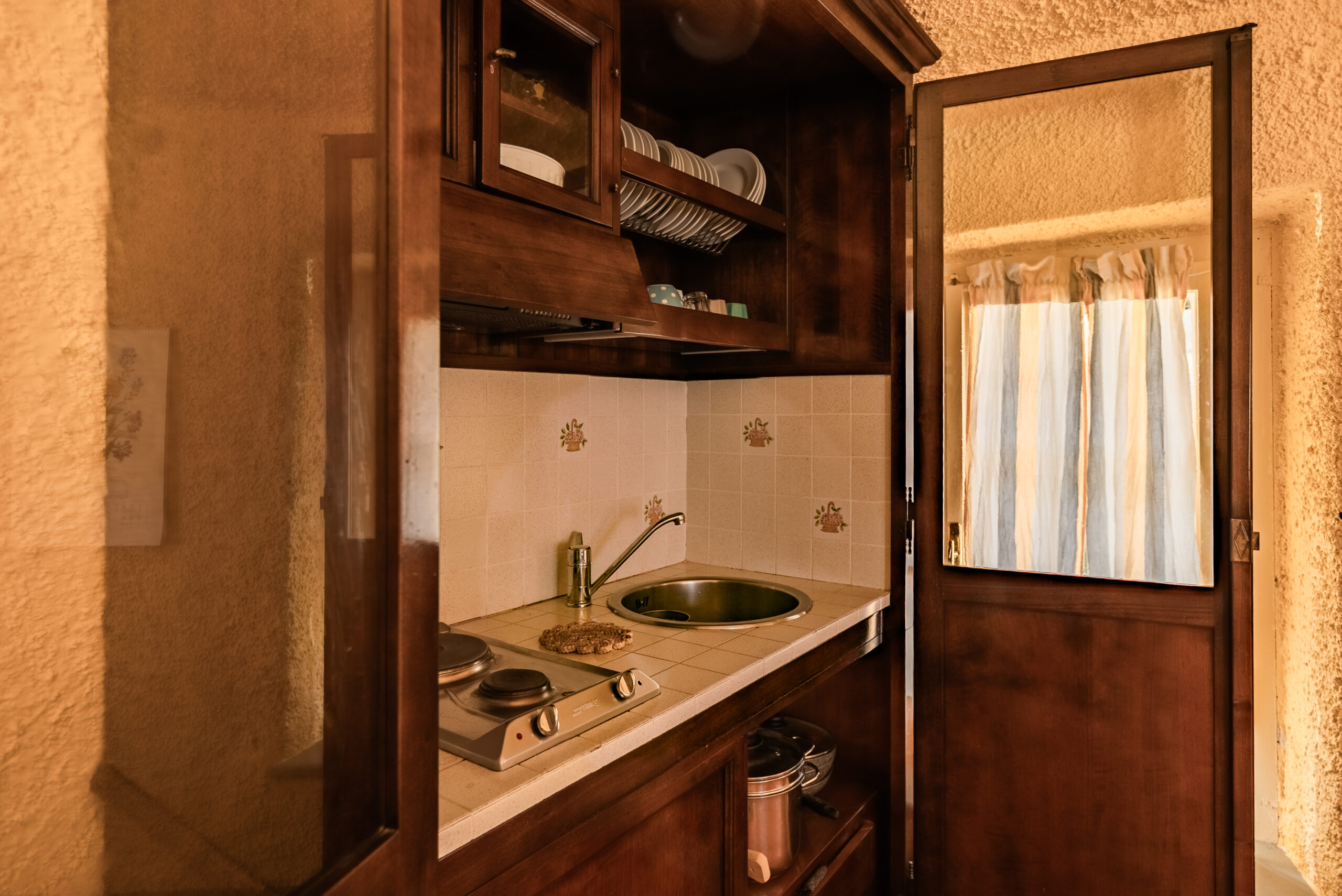 Soggiorno romantico di due notti in appartamento con camera matrimoniale, soggiorno con piccola cucina in legno arte povera e bagno.